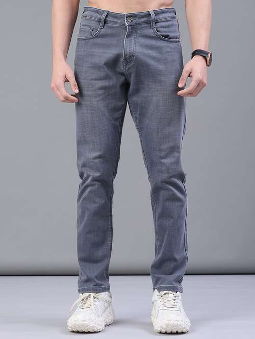 men plain mid rise full length jeans