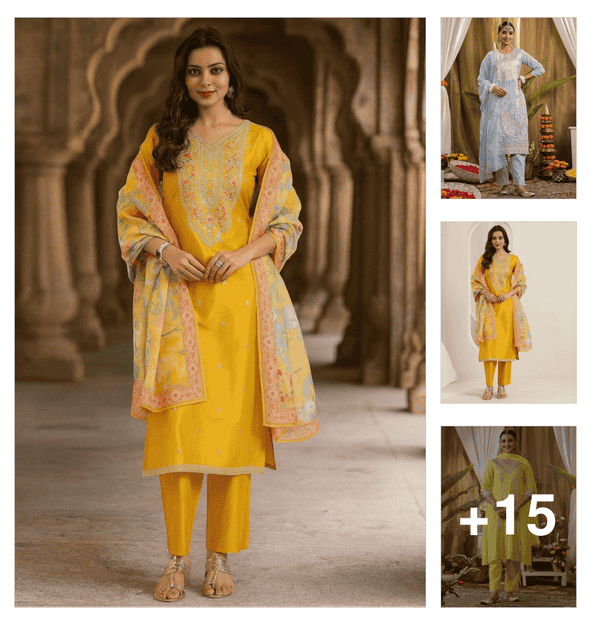 women solid with work three quarter sleeve kurta pant with dupatta set