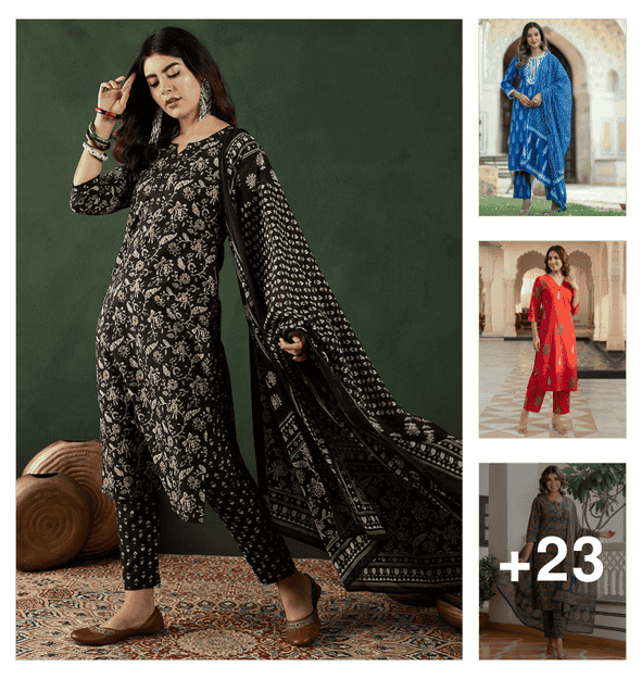 women plus size embellished three quarter sleeve kurta pant with dupatta set