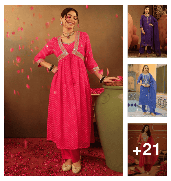 globus women pink gold foil ethnic motif round neck short kurti & partially elasticated flared palazzo festive co-ord set