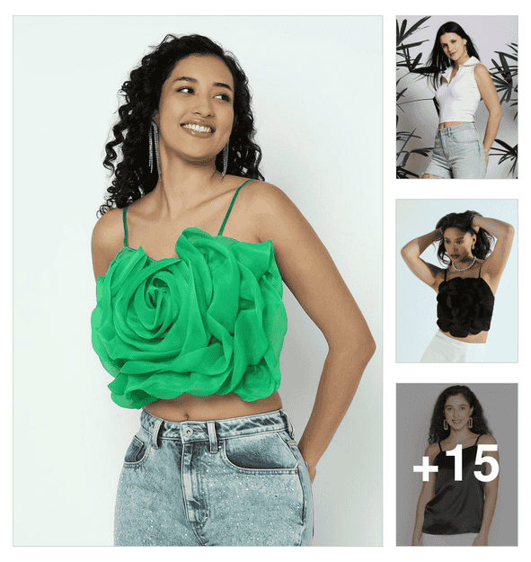women solid smocked detailed crop top