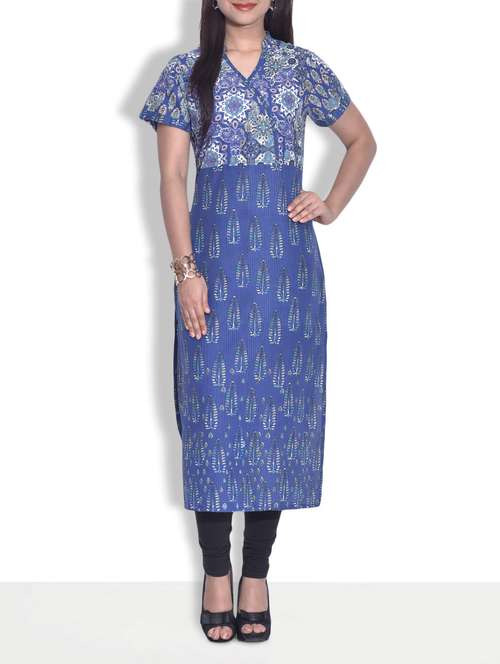 - » blue cotton printed kurta