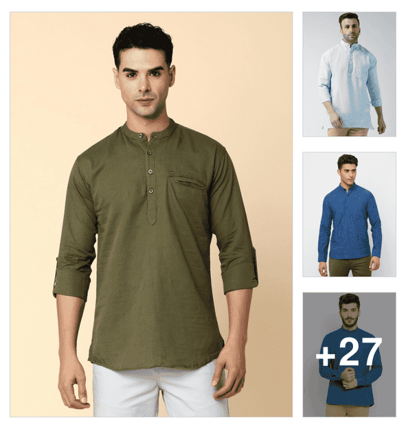 men mandarin neck long sleeve short kurta