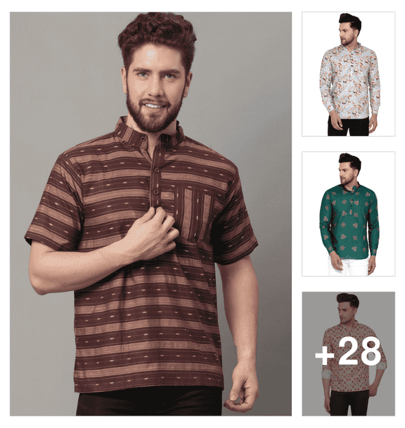 men printed long sleeves short kurta