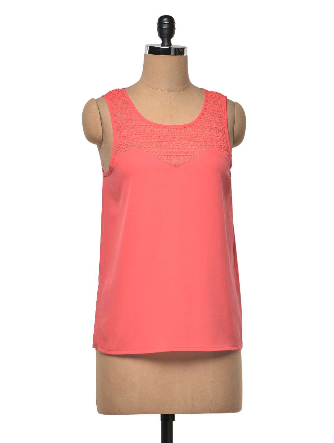 lace yoke sleeveless top - 1029079 - Very Small Image - 1