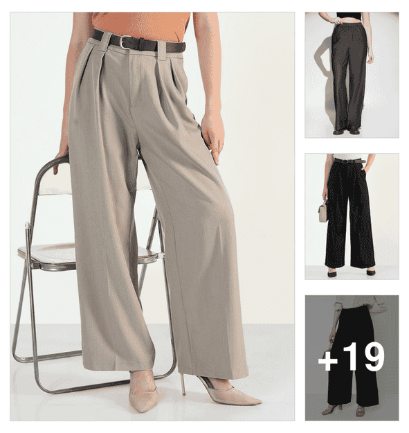 women solid high rise wide leg trouser