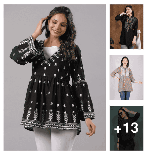 Midnight Bloom | Embroidered Tops