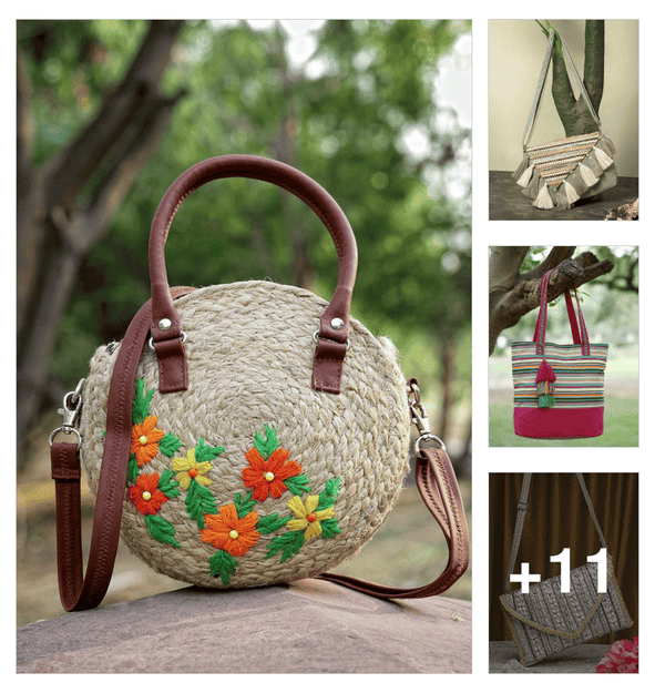 women textured jute handbag