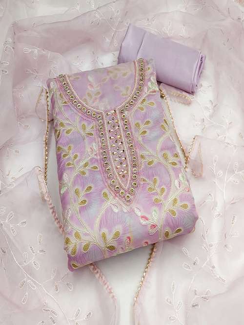 women embellished floral unstitched suit set