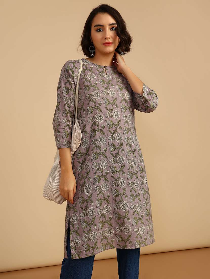 - Grab this beautiful kurta made up of cotton fabric featuring round neck designs.