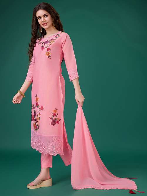 - Browse through the latest range of ethnic sets for women with tailored sleeve designs with embroidered works.
