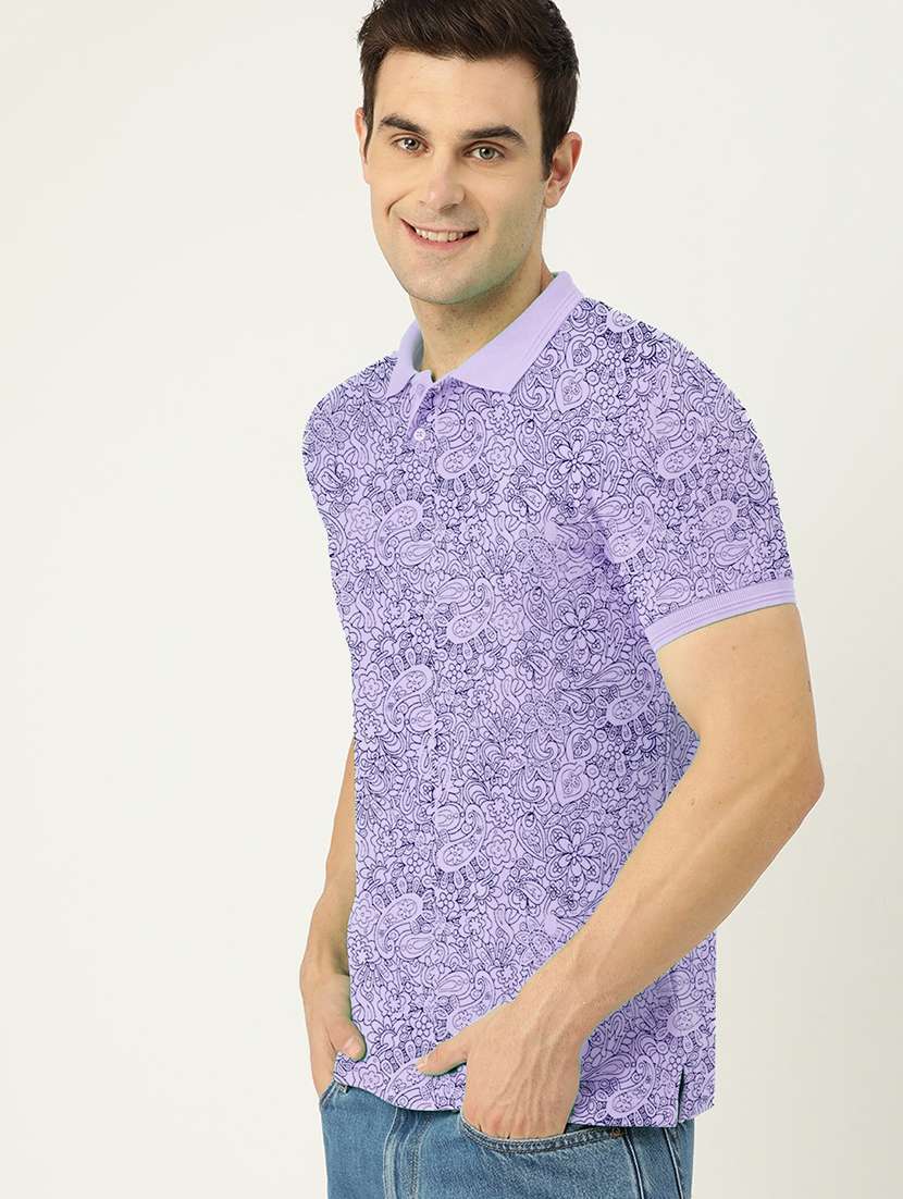 men lavender slim fit paisley print short sleeve polo t-shirt