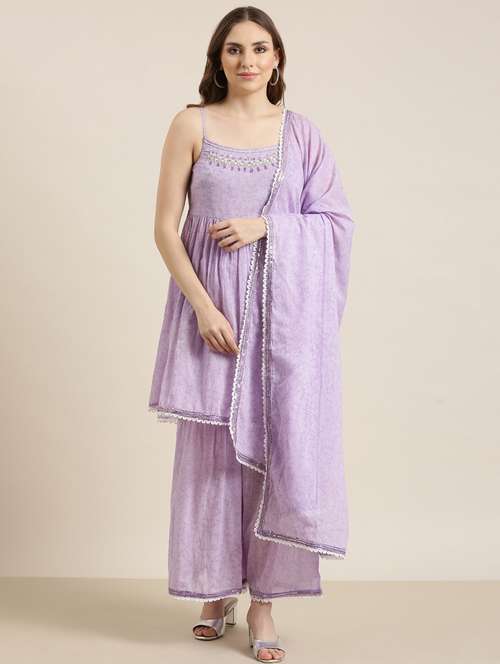 - Find gorgeous sets of ethnic wears in trending designs in lavender colors suitable for festive wear of occasions.
