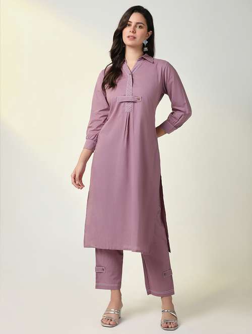 women solid kurta and pant set