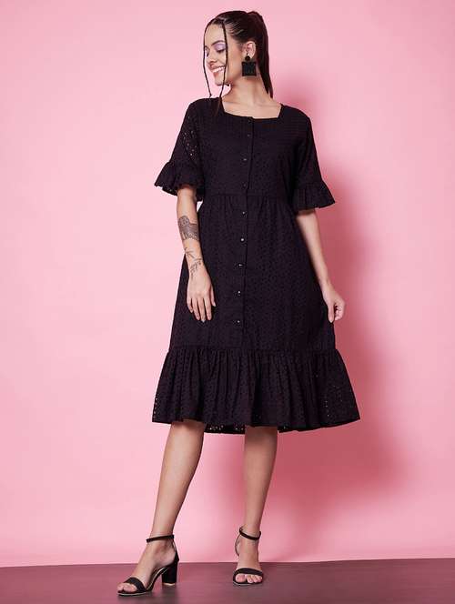 - » women self design square neck tiered dress