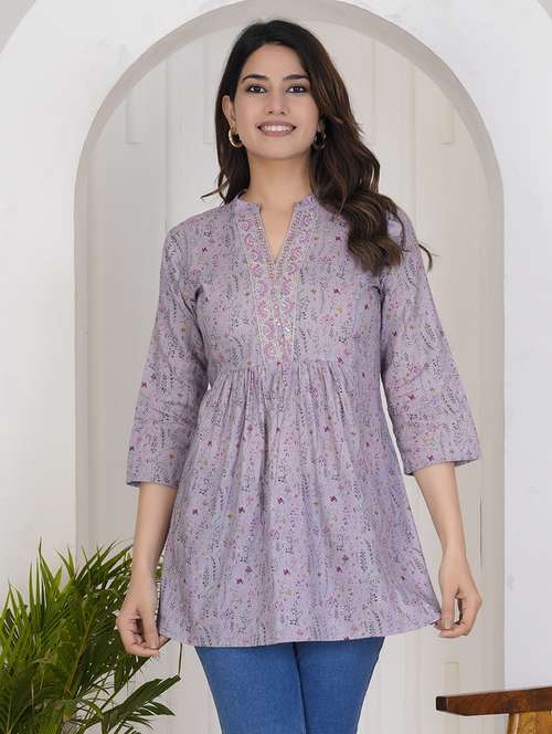 women printed mandarin neck flared kurti - 21785080 - Very Small Image - 1