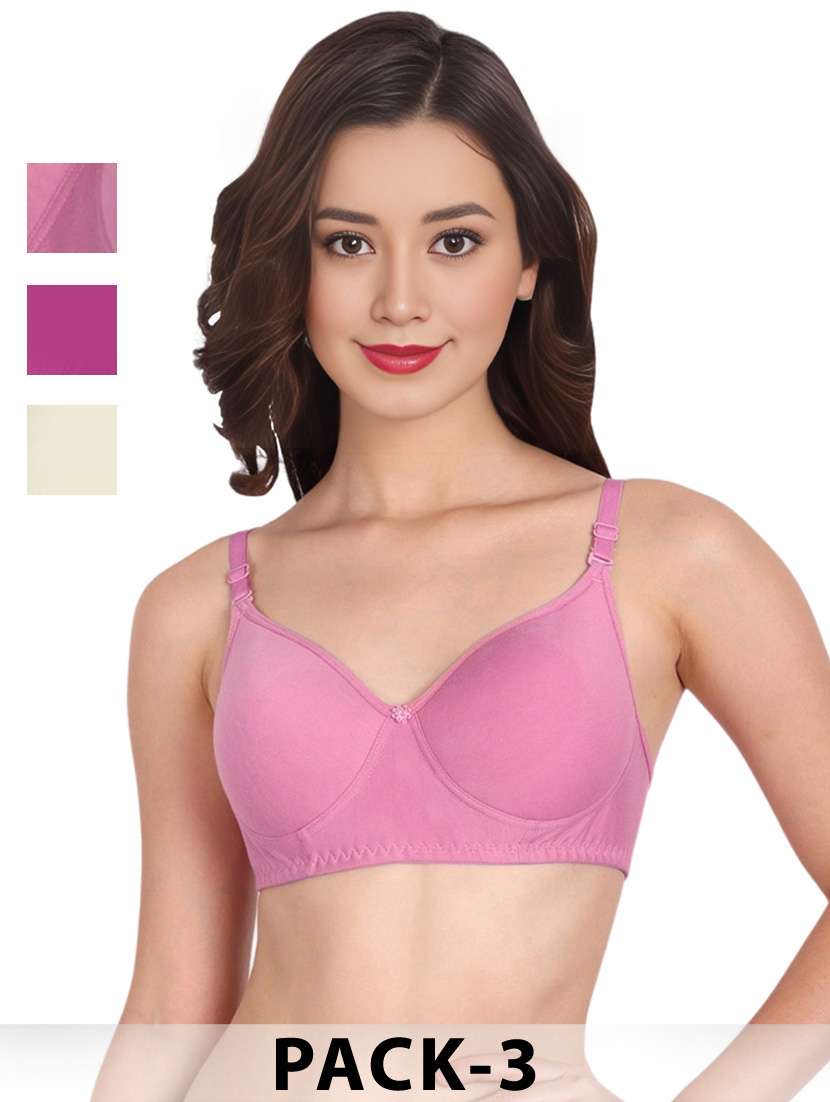 Liigne Women Everyday Non Padded Bra (Pack Of 3) - Made of Pure Cotton Full Coverage Non Wired Pushup Soft Cup for T-Shirt Saree Dress Sports Garment for Daily Use Everyday