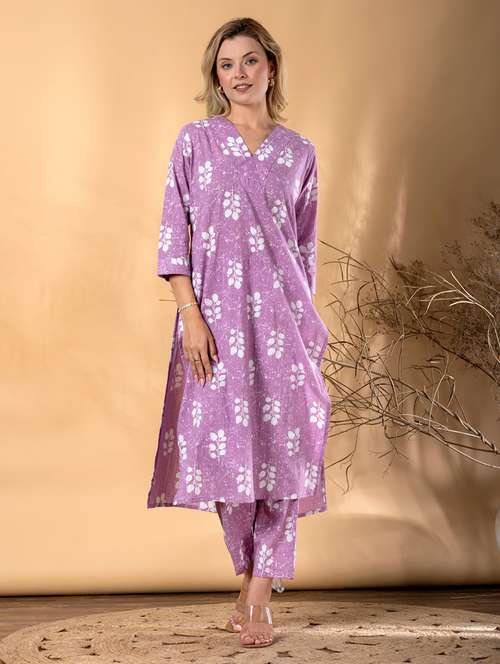 - Find gorgeous sets of ethnic wears in trending designs in lavender colors suitable for festive wear of occasions.
