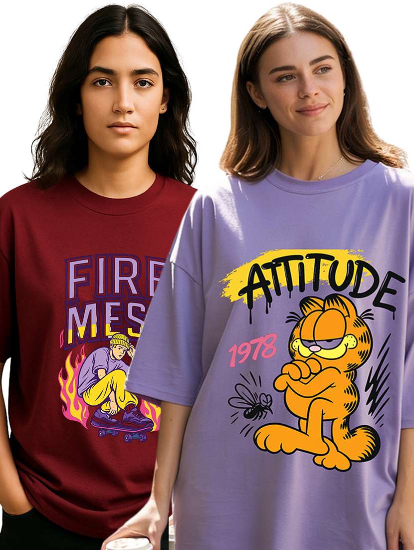 - » women pack of 2 printed short sleeve oversized t-shirt