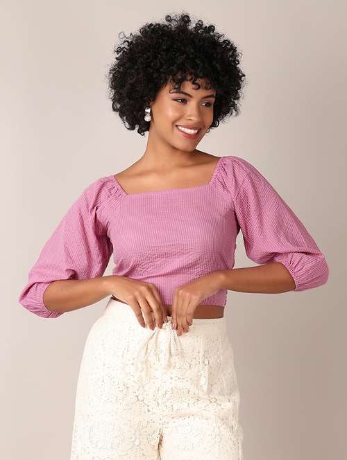 - » women lavender self design crop top