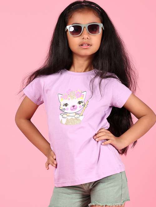 lavender cotton front print tee