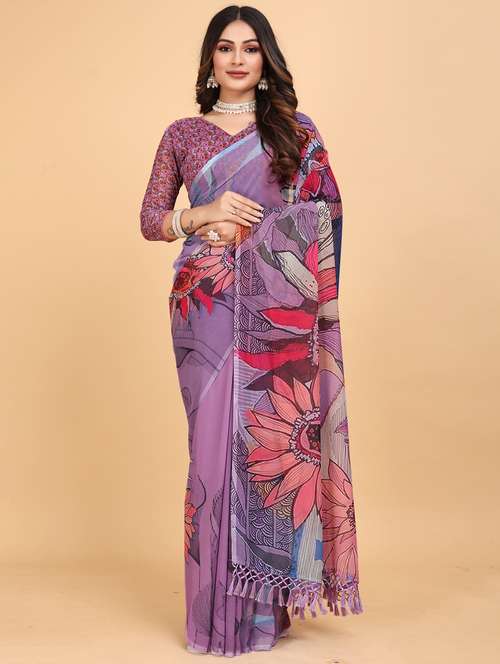 women floral printed saree with blouse - 21975253 - Very Small Image - 1