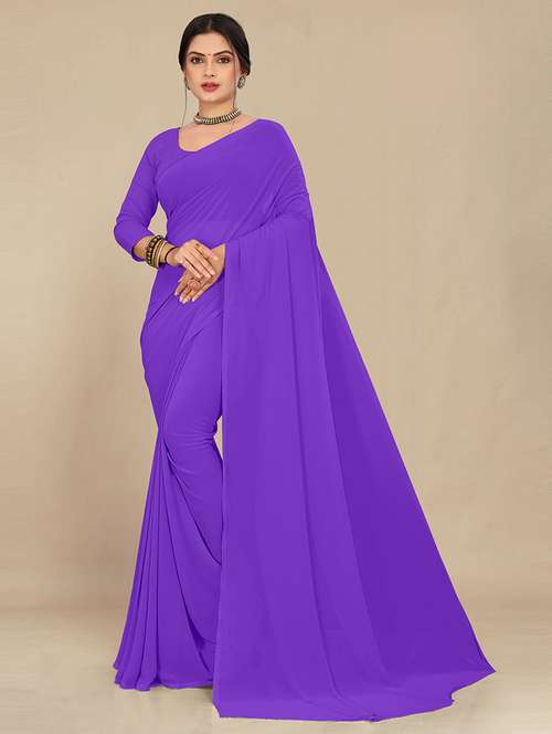 women lavender plain saree  - 21538960 - Very Small Image - 1