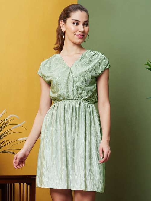 - Dress up in a soothing pattern and don this dress made of polyester material.