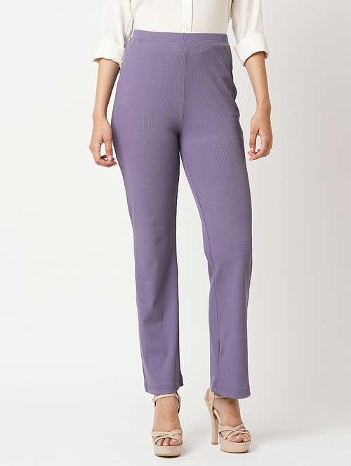 - » globus women lavender stretchable mid-rise rib knit slim fit bootcut treggings