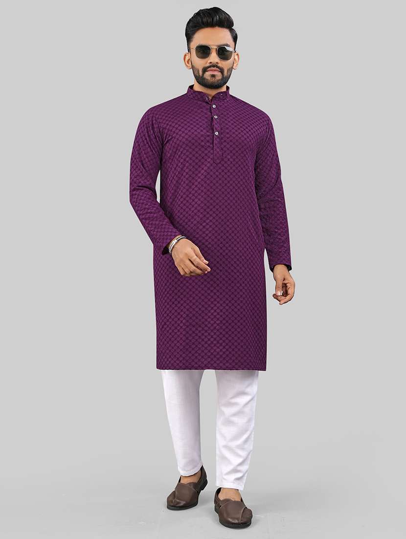 Present Solid Self Design Kurta For Men it's Come With Full Sleev and Knee Length With Two Pockets