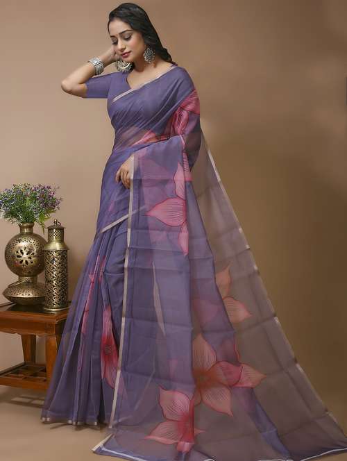 - » women's floral lavender colored saree with blouse