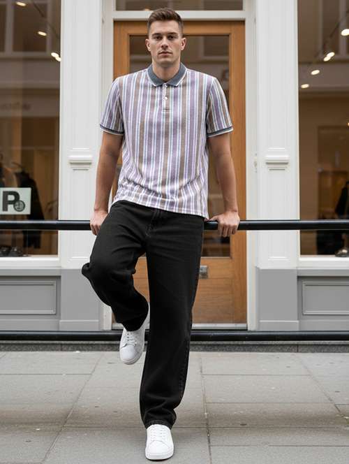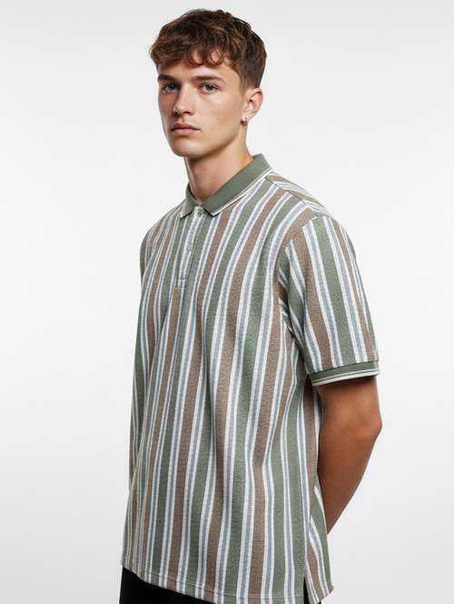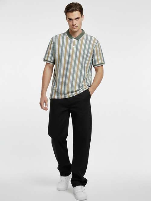 men striped short sleeve regular fit polo t-shirt