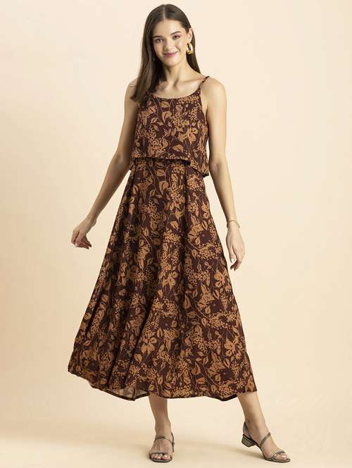 *Includes:This Clothing Consists Of 1 Dress (Any Accessories Worn By The Model Are Not For Sale)*Material:Viscose Rayon Gsm:119*Dress Length:52 Inches (Approx.)*Model Stats:The Model In The Image Is 178 Cm Tall, And Bust 34\ Inches Is Wearing Size - (S) Small*Features:Spaghetti Strap, Round Neck, A-Line, Maxi Length, Lightweight And All Over Printed Pattern*Care:Medium Machine Wash, Warm Iron, Iron While Damp. (After Washing Do Not Dry The Fabric On High Heat And Do Not Dry Fully. Medium Heat Is Best And Removes Just Prior To Being Completely Dry)*Size Information:Please Refer To Our Size Chart Before Making The Purchase. If Your Size Is In Between Two Sizes, We Recommend That You Choose A Larger Size.*Tags:Printed Dresses For Women, Long Dresses For Women, Western Dresses For Women, Sleeveless Summer Dress For Women, Maxi Dresses For Women