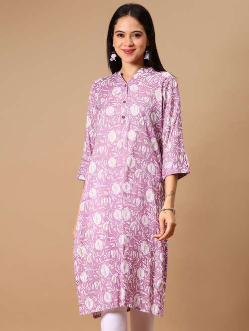 - Grab this beautiful kurta made up of rayon fabric featuring mandarin collar neck designs.