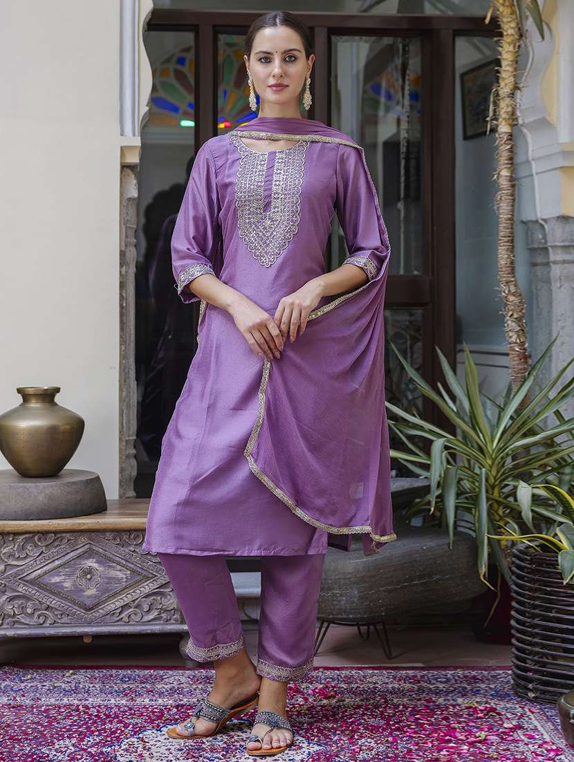 - Find gorgeous sets of ethnic wears in trending designs in lavender colors suitable for festive wear of occasions.