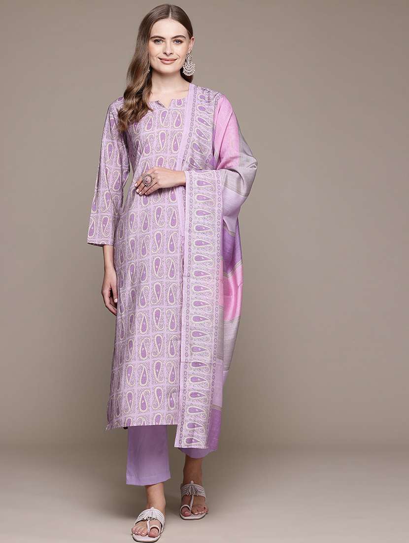• Find gorgeous sets of ethnic wears in trending designs in lavender colors suitable for festive wear of occasions.