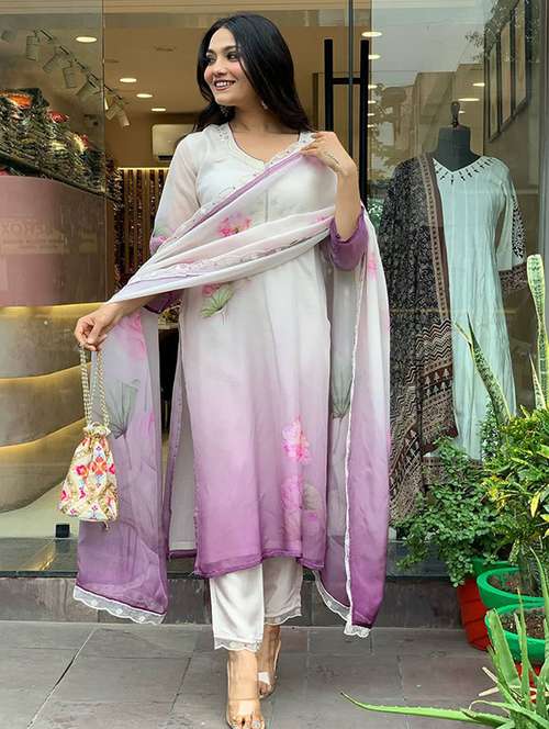 women embroidered three quarter sleeve kurta pant with dupatta set