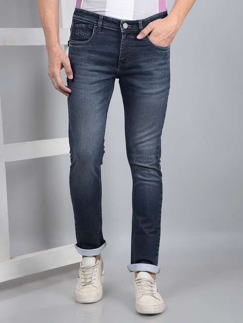 men washed mid rise full length jeans
