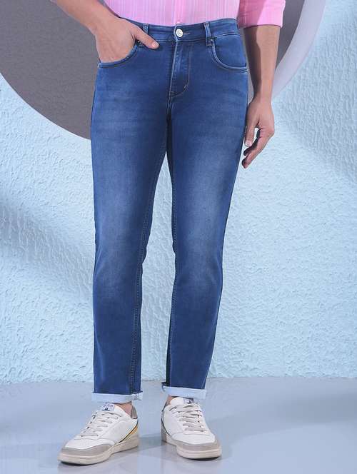 men plain mid rise full length jeans