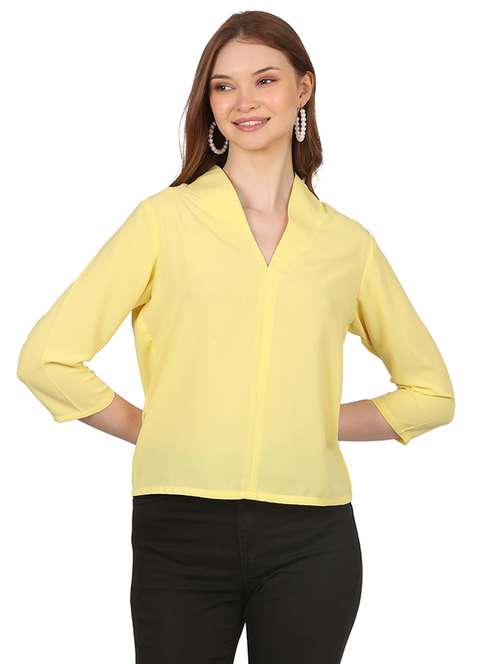 - » women yellow three quarter sleeves solids top