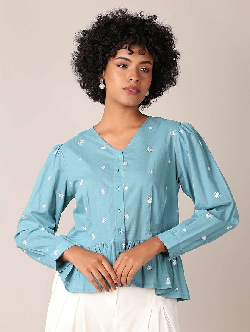 - » women primted puff sleeves tiered top