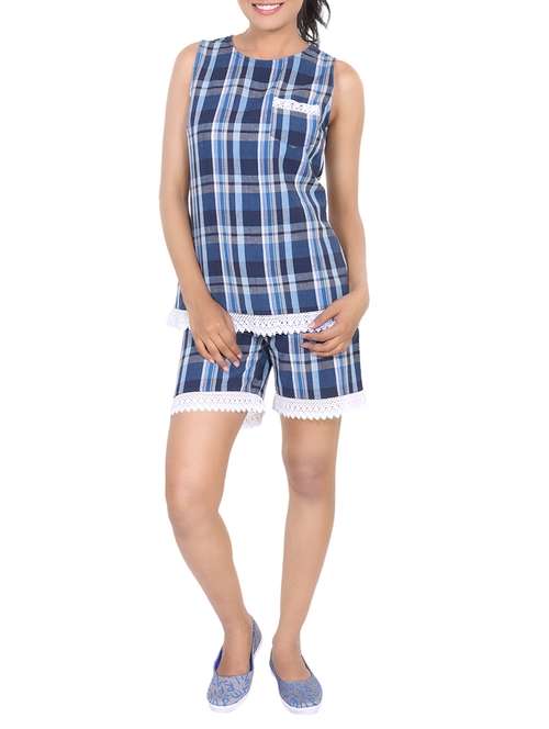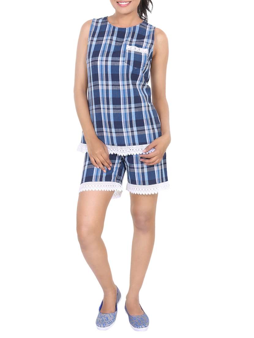 - » lace detail checkered top with shorts set
