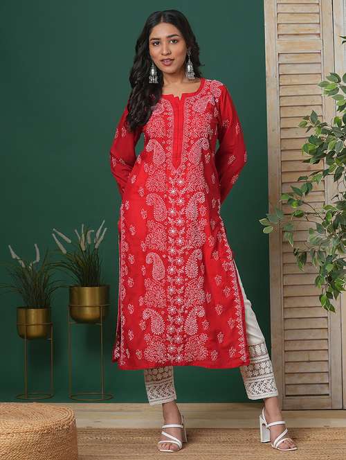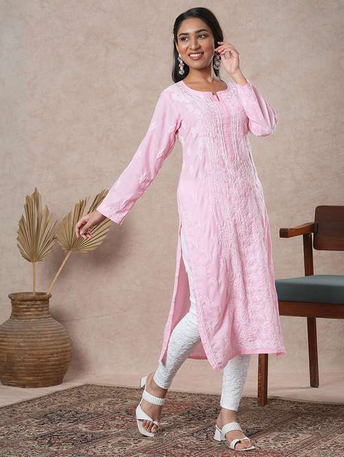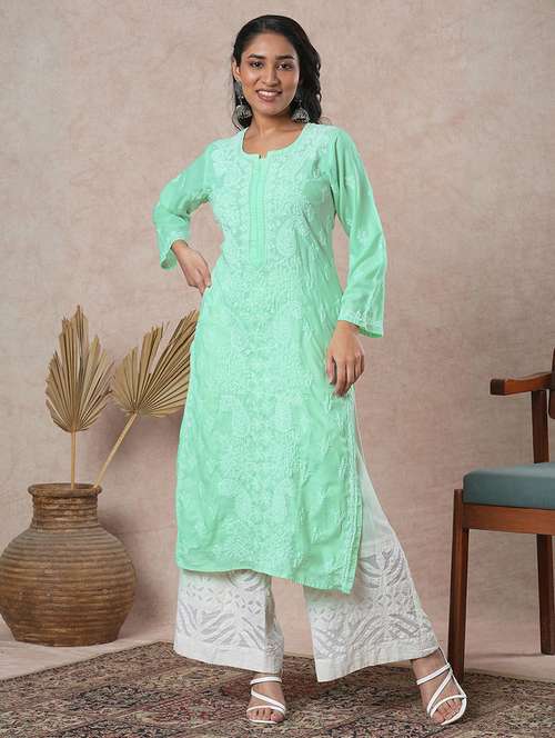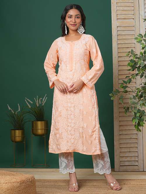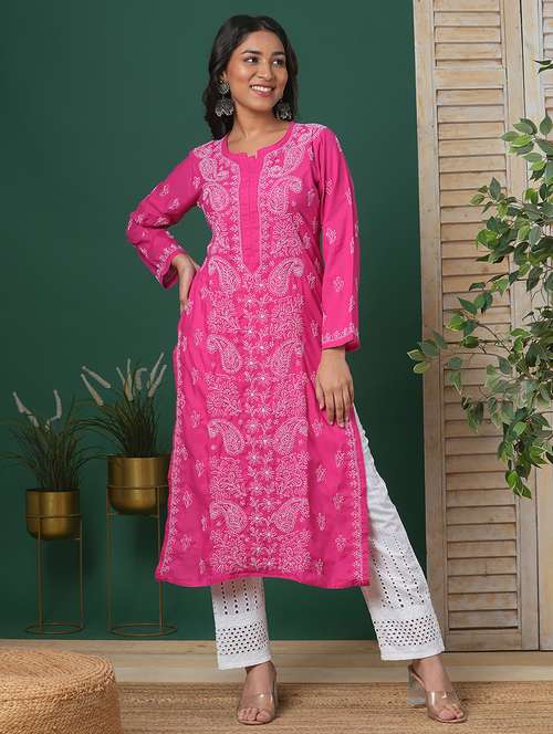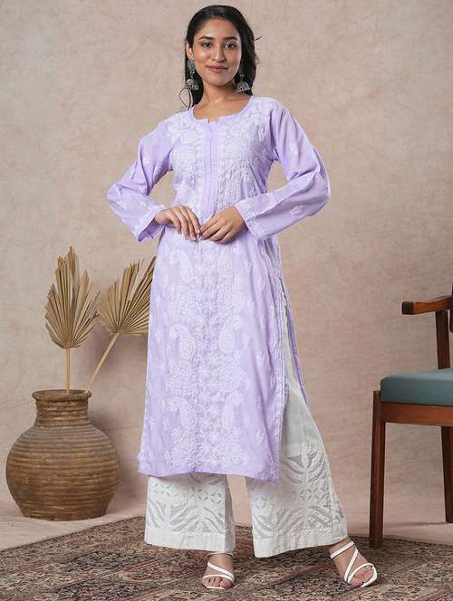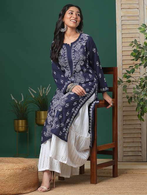 - Grab this beautiful kurta made up of cotton fabric featuring notch neck designs.