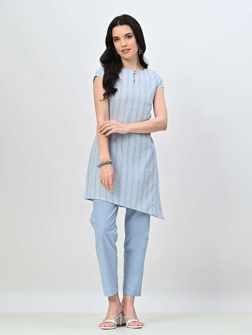 - » women striped short sleeve kurta pant set