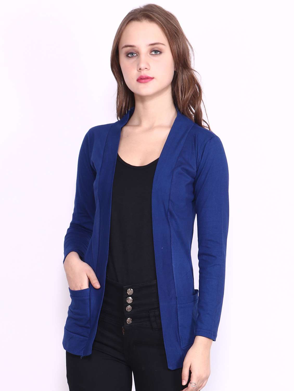 - » women solid long sleeves shrug with pocket