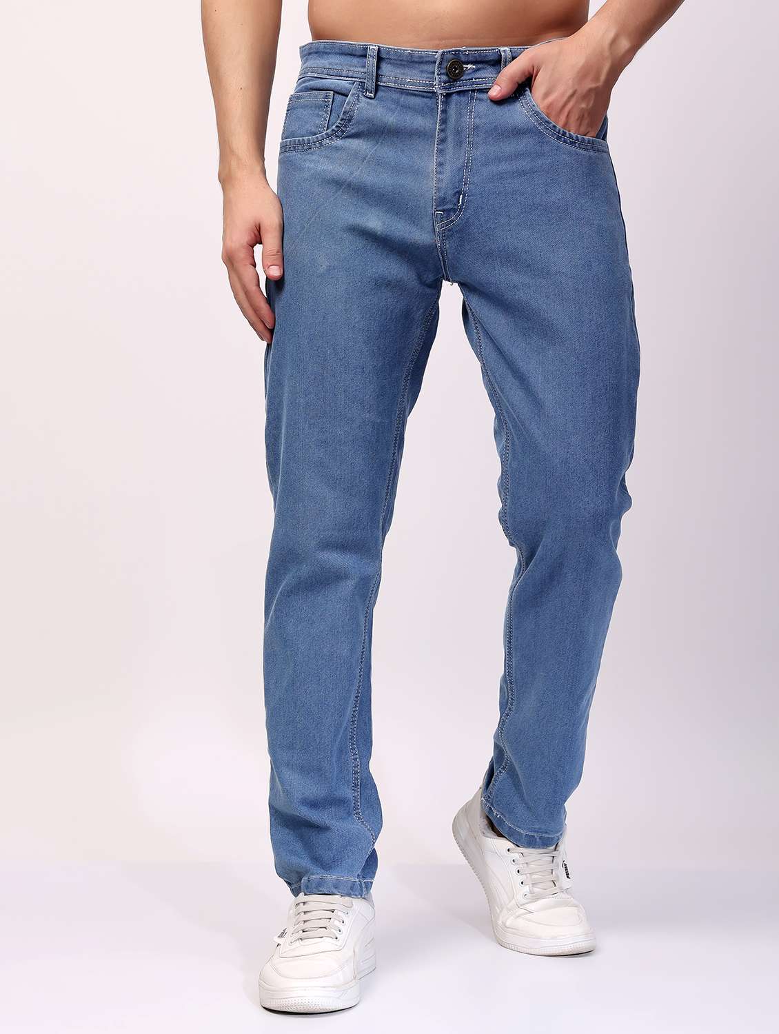 - » men light blue mid rise full length jeans