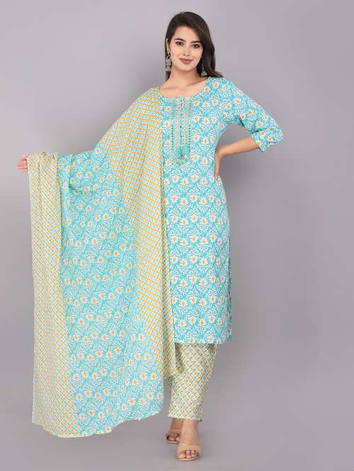 women printed cotton suit set with dupatta