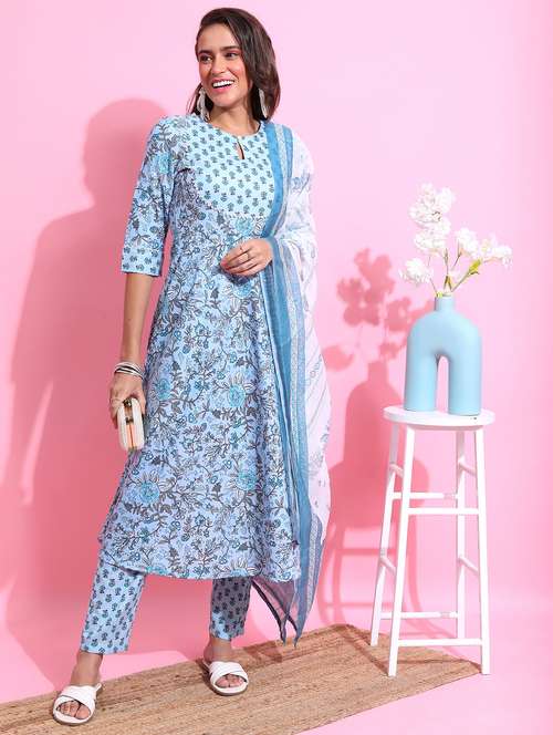 - Find gorgeous sets of ethnic wears in trending designs in light blue colors suitable for casual wear of occasions.