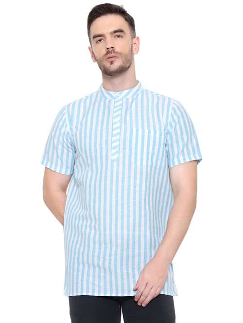 - » men striped mandarin neck short sleeve short kurta