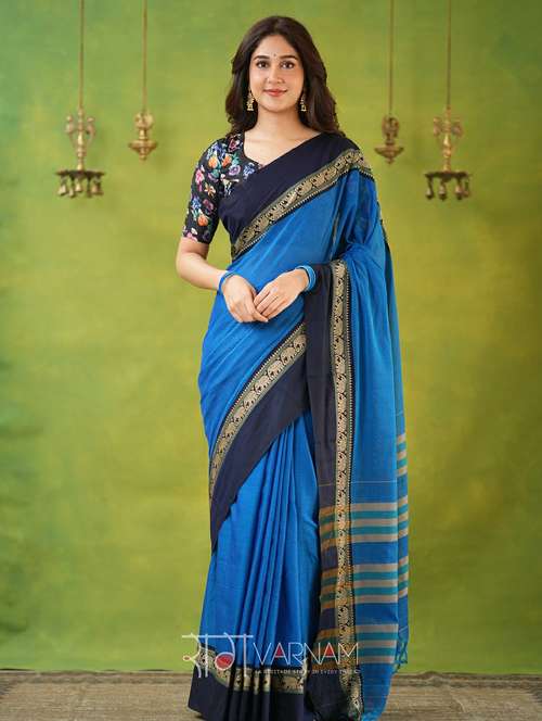 women solid with bordered narayanpet saree with blouse